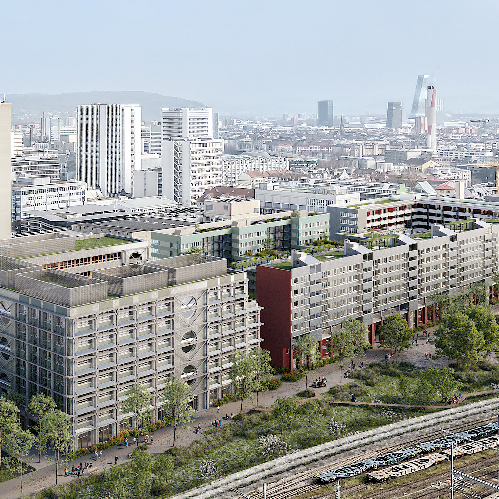 Auf der Parzelle der SBB ist eine aufgebrochene Blockrandbebauung vorgesehen. Der grosszügige, vielfältig gegliederte Innenhof soll als Begegnungsfläche dem Austausch unter den NachbarInnen dienen. Durchgänge im Blockrand ermöglichen neue Verbindungen zwischen dem Innenhof und der Umgebung. Im nördlichen Teil des Baufelds sollen Flächen für stilles Gewerbe und Dienstleistungen entstehen. An der Lysbüchelstrasse streben die Planungspartner eine bereichernde Nutzungsdurchmischung an, wobei der Fokus auf dem Wohnen liegt. Die einzelnen Gebäude werden grösstenteils von den SBB als Eigeninvestition realisiert. Ca. 30 Prozent der realisierten Wohnfläche wird von der Wohnbau-Genossenschaft Nordwest zusammen mit der Wohngenossenschaft Jurablick realisiert. Damit die Quartier- und Stadtbevölkerung die Identität des neuen Stadtteils von Beginn weg mitprägen konnte, stellte die SBB das Areal bis zum Baustart für eine Zwischennutzung zur Verfügung.