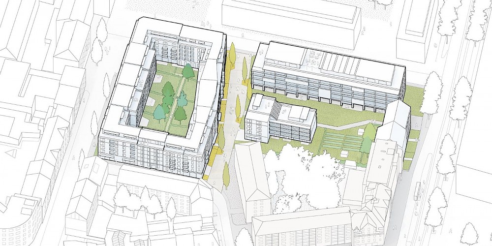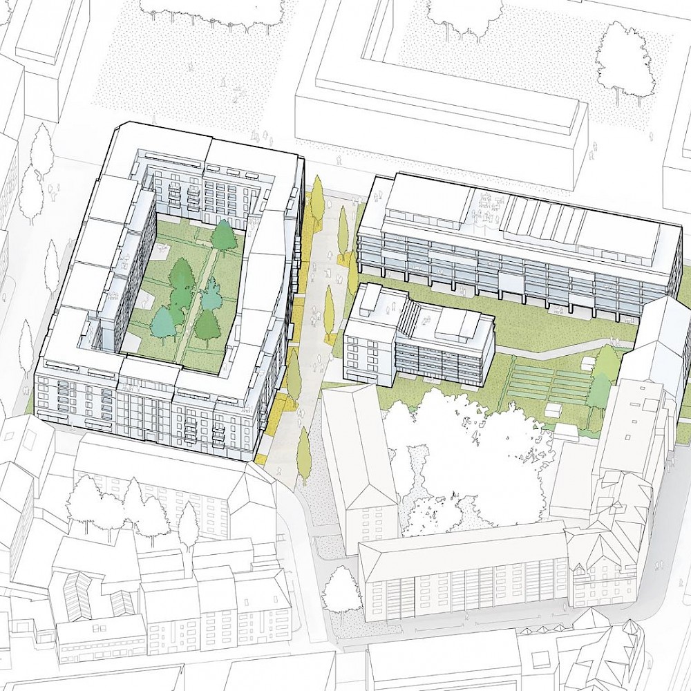Südlich des Bebauungsplanperimeters möchte die Stiftung Habitat auf ihrem Areal „Lysbüchel Süd“ günstigen Wohnraum und eine lebenswerte Wohnumgebung schaffen. Dazu gibt sie kleinteilige Baurechtsparzellen an Baugruppen für die Erstellung von Wohnraum und anderen quartierdienlichen Nutzungen ab (Baugemeinschaften, Genossenschaften). Die Stiftung führt auch eigene Wohnprojekte aus, u.a. die Umnutzung des ehemaligen Weinlagers in Wohnraum und die Realisierung eines zweiten „Musikerwohnhauses“.